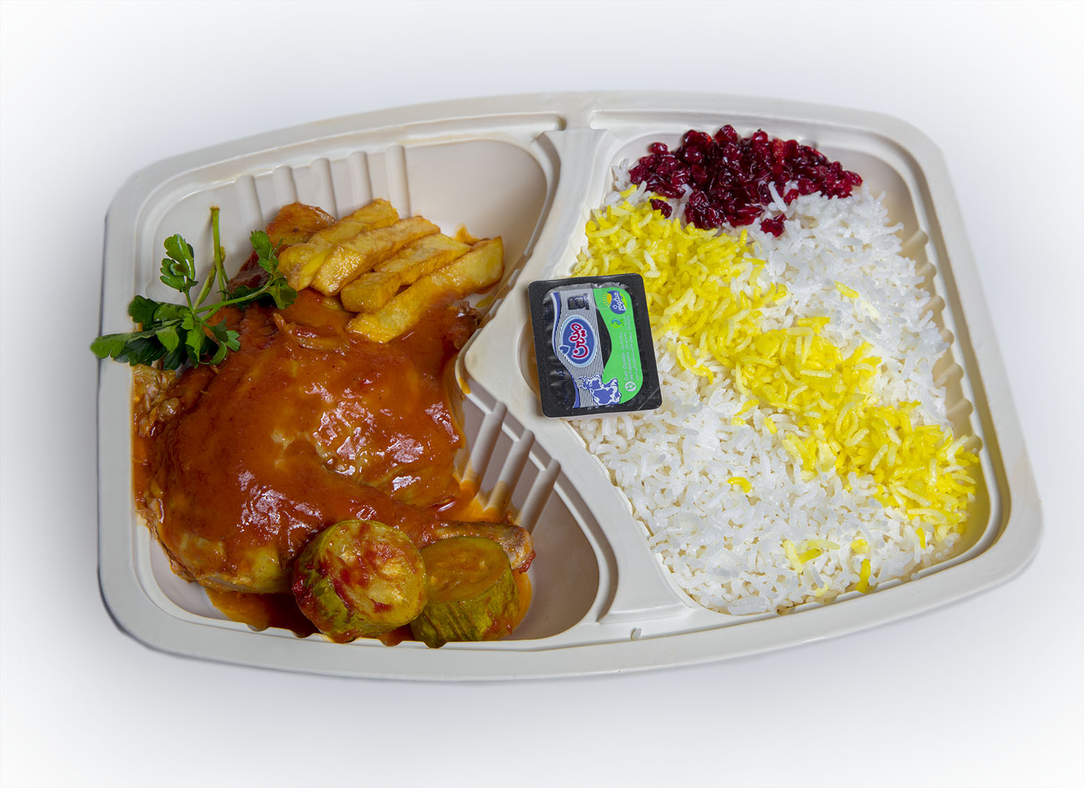 100 گرم گوشت گوساله،هزینه ظرف لحاظ شده است،نان همراه غذا نمی باشد لطفا در صورت لزوم نان را از منو انتخاب کنید