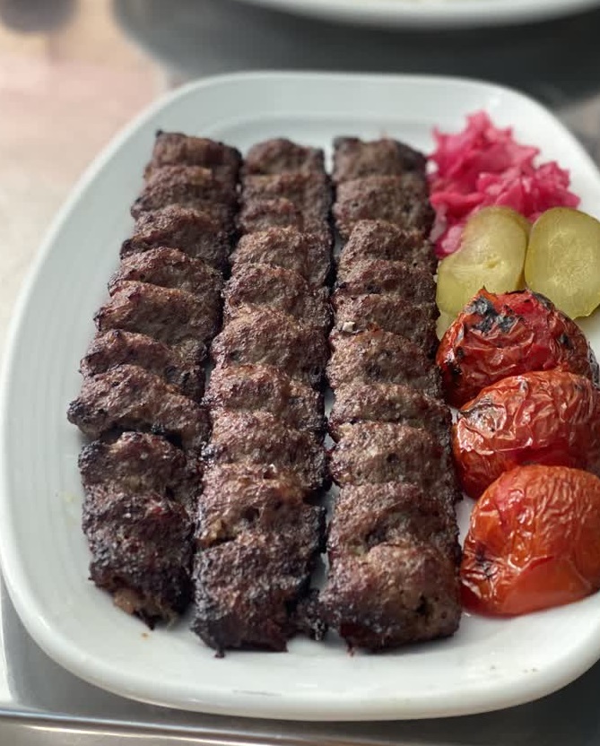 200 گرم گوشت دست ساز باریژ،پیاز و جعفری،سس مخصوص باریژ،نان گرد،به همراه یک پرس سیب زمینی